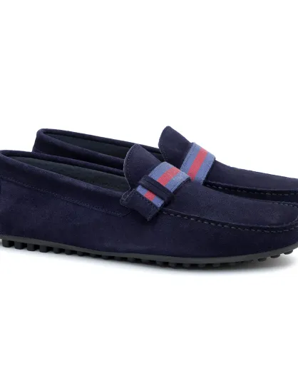 Blauwe suède instappers van Senet