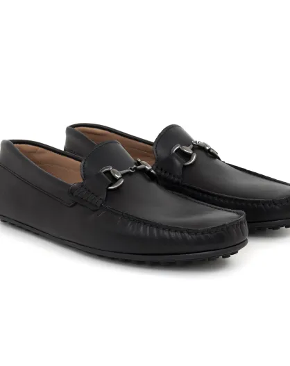 Instappers van 100% zwart leer met mocbuckle