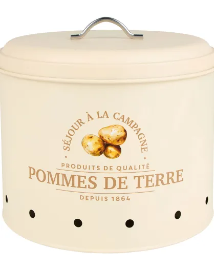 Solange beige ijzeren opbergdoos met aardappeldecor - D.22,5 cm