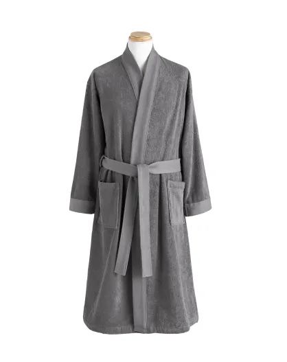 Ess-Kimo grafietgrijze effen badjas van gekamd katoen