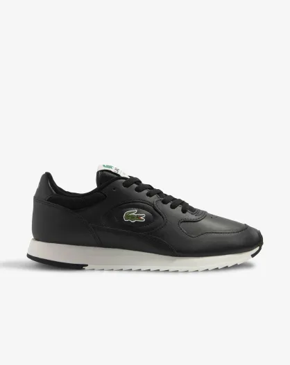 Zwart/gebroken witte leren linetrack sneakers