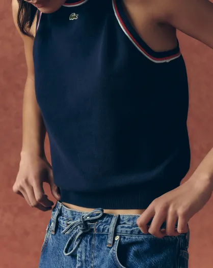Marineblauw/Ruisseau-grenadine mouwloze top van katoenjersey