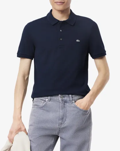 Slim-fit poloshirt van marineblauw minipiqué van stretch