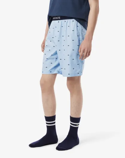 Pyjamabroek in popeline met panorama/marineblauwe print