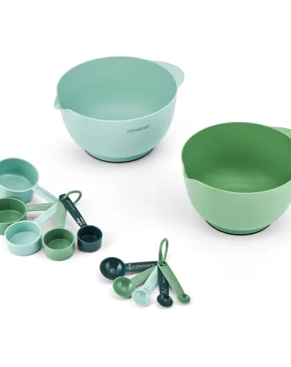 Set van 12 stuks voor het mengen en meten van groen/blauw - 24x29x14 cm