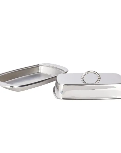 Boterschaal met zilveren deksel — 19x10,3x6,5 cm