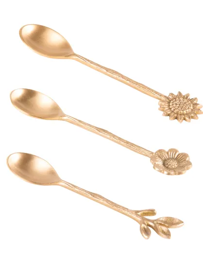Set van 3 gouden dessertlepels met groenten - 14x3x2cm