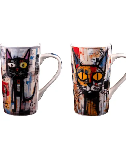 Set van 2 veelkleurige straatbekers - 14x9x14cm