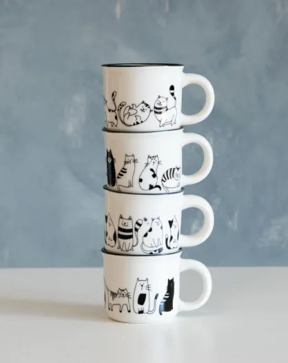 Set van 8 Friends bekers wit/zwart - 9x6x6cm