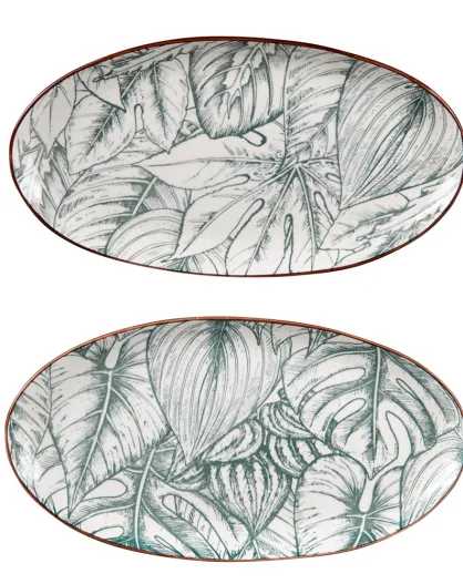 Set van 2 ovale groene schalen uit Paraguay - 25x13x2cm