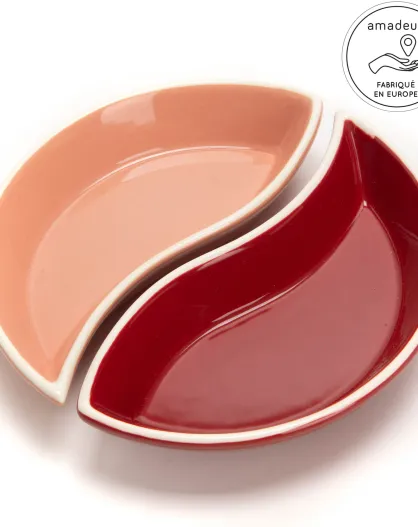 Peps rood/roze 2-delige schaal met halve maan - 3,50x11 cm