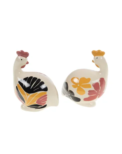 Set 2 parelhoenders Margot crème/ivoor - 16x15 cm