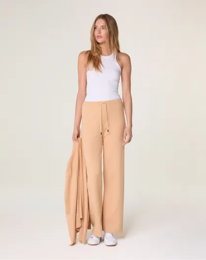 Zanele bruine, rechte broek van zeemkatoen met trekkoord