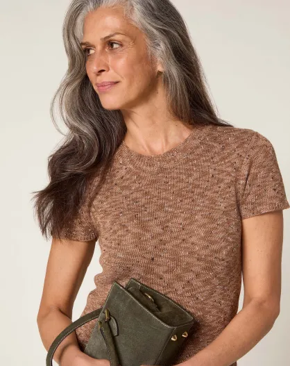 Hasna bruine taupe porseleinen geribbelde trui met korte mouwen