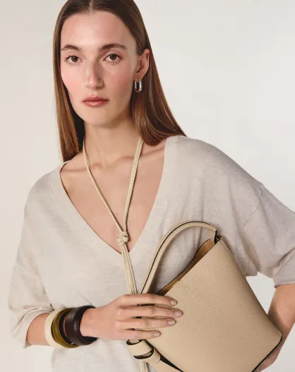 Mei witte ecru wollen trui met korte mouwen en V-hals