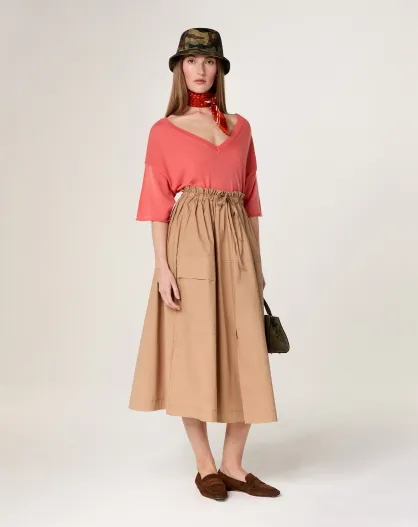 Mei mandarijnoranje wollen trui met korte mouwen en V-hals