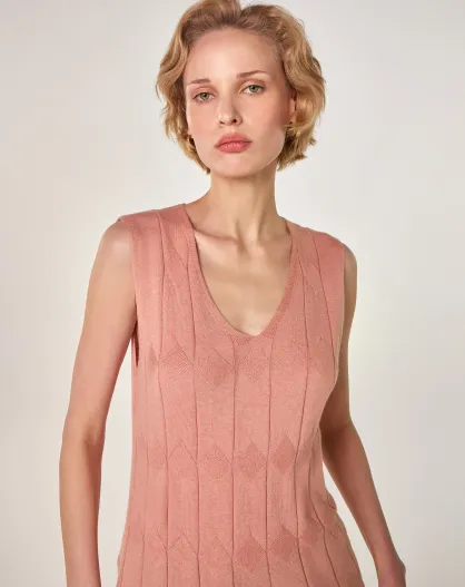 Roze beige Mouna katoenen fantasiegebreide tuniek met V-hals