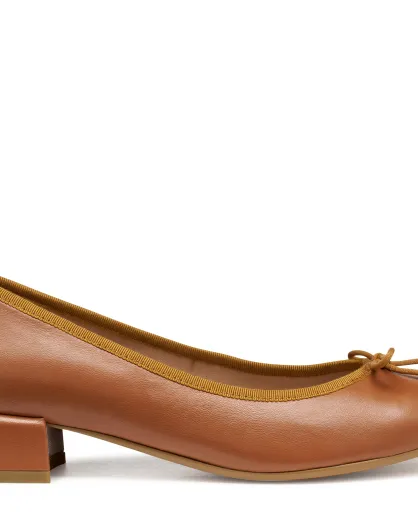 Floretia okerkleurige leren ballerina's met lage hak