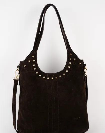 Dane schoudertas van mokka suède - 27 x 17 x 7 cm