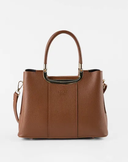 Olivia camel leren schoudertas - 25 x 19 x 12 cm