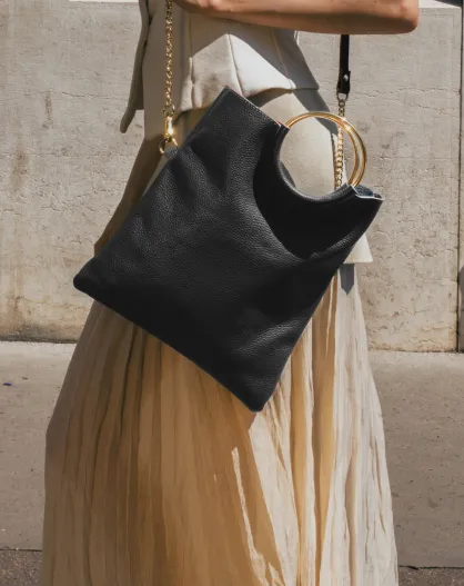 Jany handtas van mokkaleer - 29 x 31,5 x 2 cm