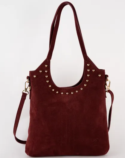 Dane bordeauxrode suède schoudertas - 27 x 17 x 7 cm