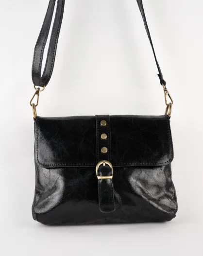 Otis zwarte leren schoudertas - 23 x 25 x 4 cm