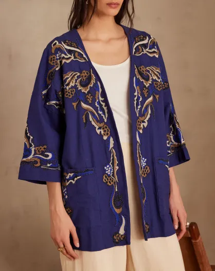 Geborduurde koningsblauwe jas Nouria B