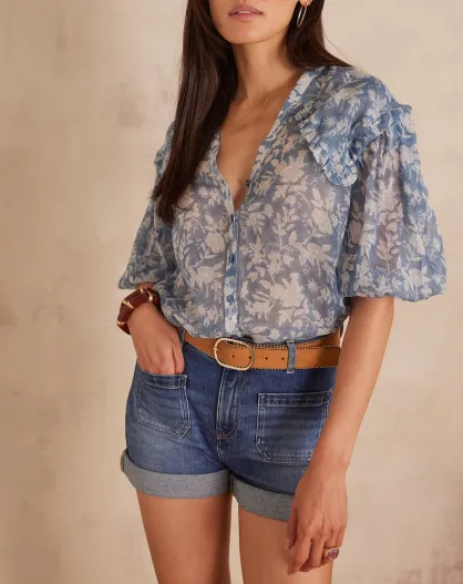 Pio Bl Imp Light Indigo blouse met bloemen