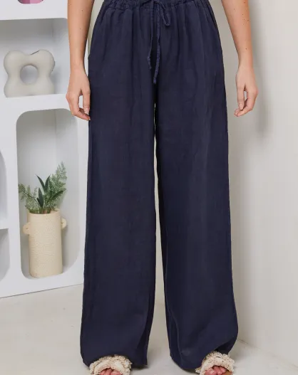 Marineblauwe broek van 100% linnen Tessia