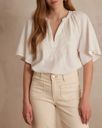 Bl Poker Bl crèmekleurige blouse met borduursel