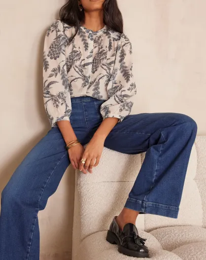 Blauwe saffierblouse met blauwe Jouy canvasprint