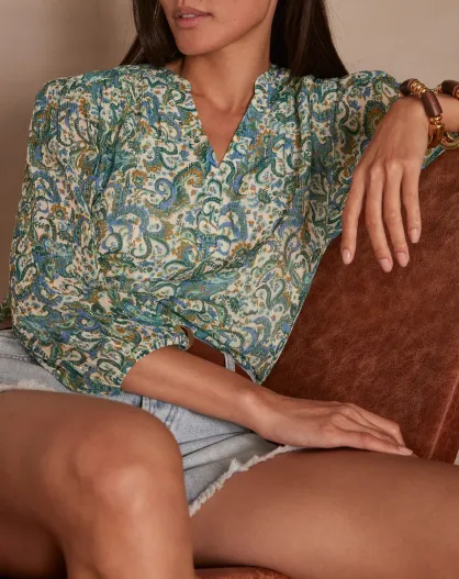 Bl Imp donkerbruine blouse met turkooisblauwe bloemen