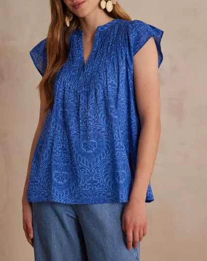Billie Bl blauwe blouse met arabeske print