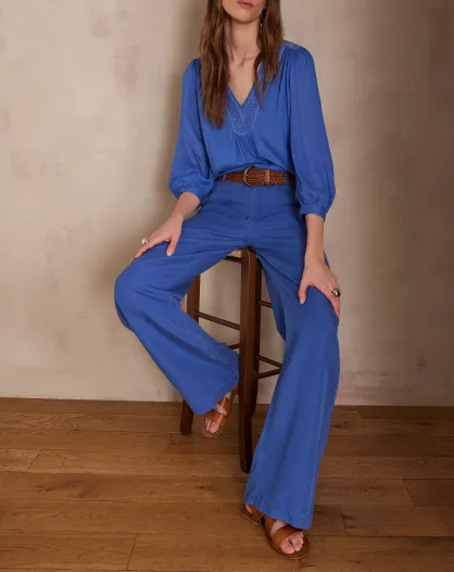 Sandy Bis Wide Leg blauwe broek