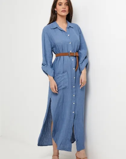 Sélène jurk van 100% indigolinnen