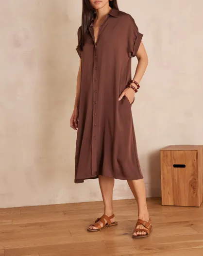 Nayaa R chocolade satijnen jurk