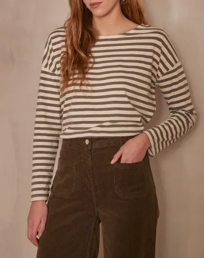 Kaki T-shirt met madeliefjes
