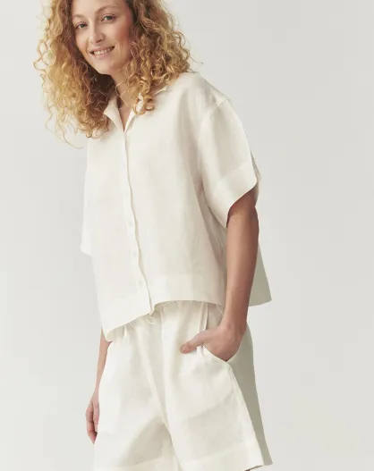 Korte broek van stof Sevilla in gebroken wit