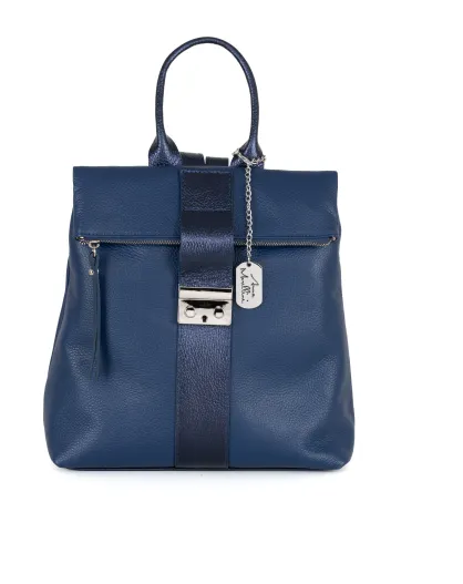Azalea blauwe leren jeanstas - 30x11x31 cm