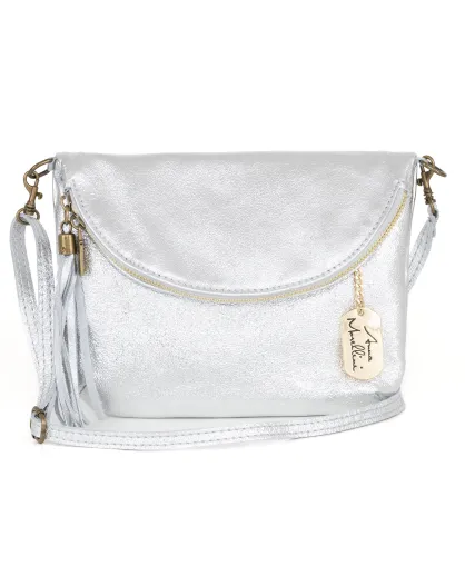 Beverly zilveren leren tas - 22x2x18 cm