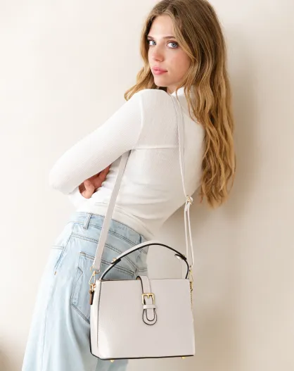 Adelma beige leren tas - 25x14x20 cm