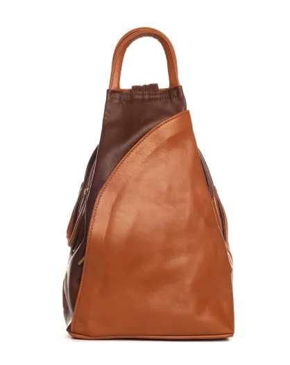 Novara cognac+bruine leren tas - 29x13x34 cm