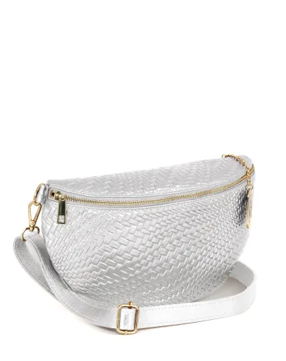 Rufina zilveren leren tas - 30x9x18 cm
