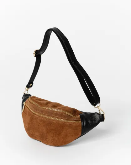 Carola cuoio-zwarte leren tas - 32x9,5x16 cm