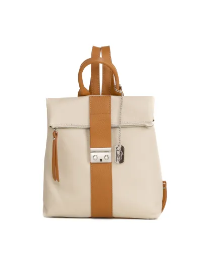 Azalea beige-cuoio leren tas - 30x11x31 cm