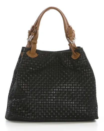 Fosdinovo zwarte leren tas - 37x15x45 cm
