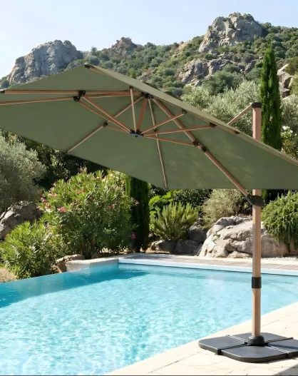 Parasol déporté effet bois Quartz vert mélèze - 3x3m