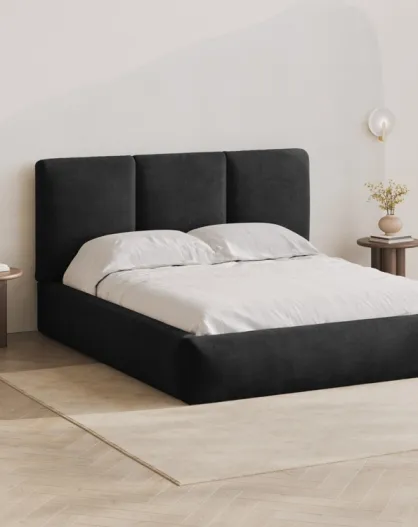 Borstbed met Chenille hoofdbord Bona zwart - 220x200x100cm