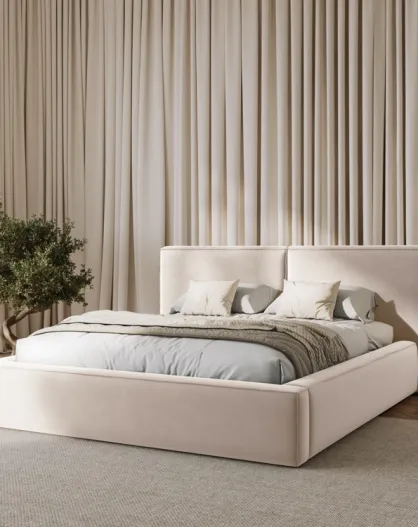 Arendal Lichtbeige tweepersoons fluwelen bed met fluwelen hoofdeinde - 228x234x97,5cm